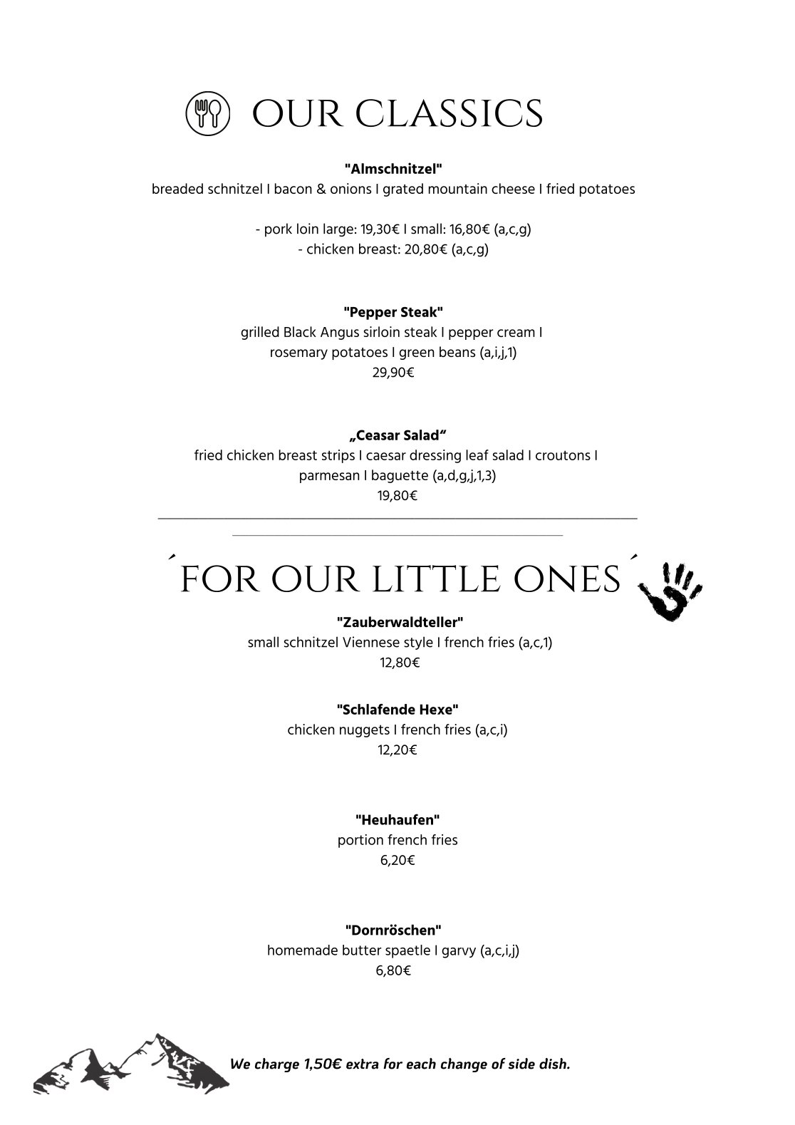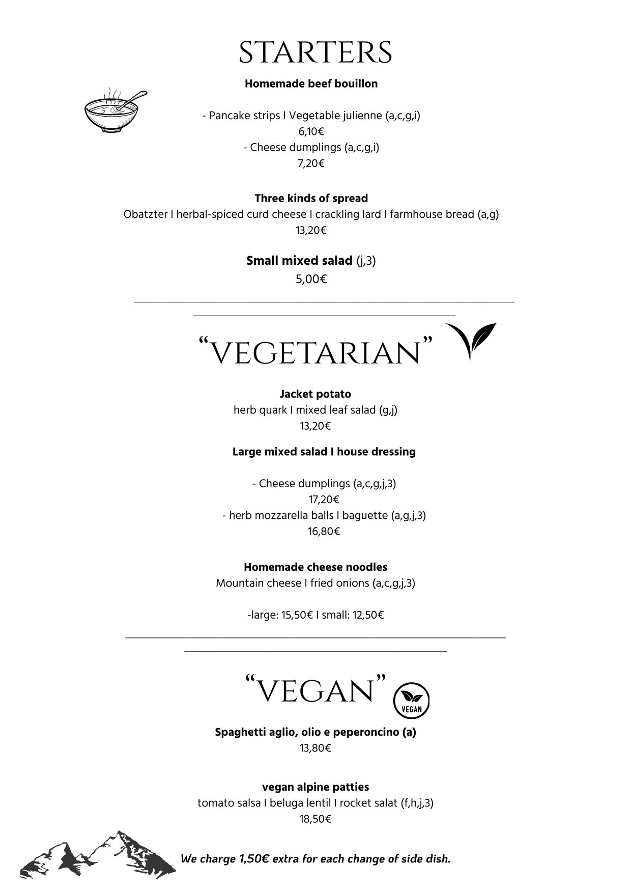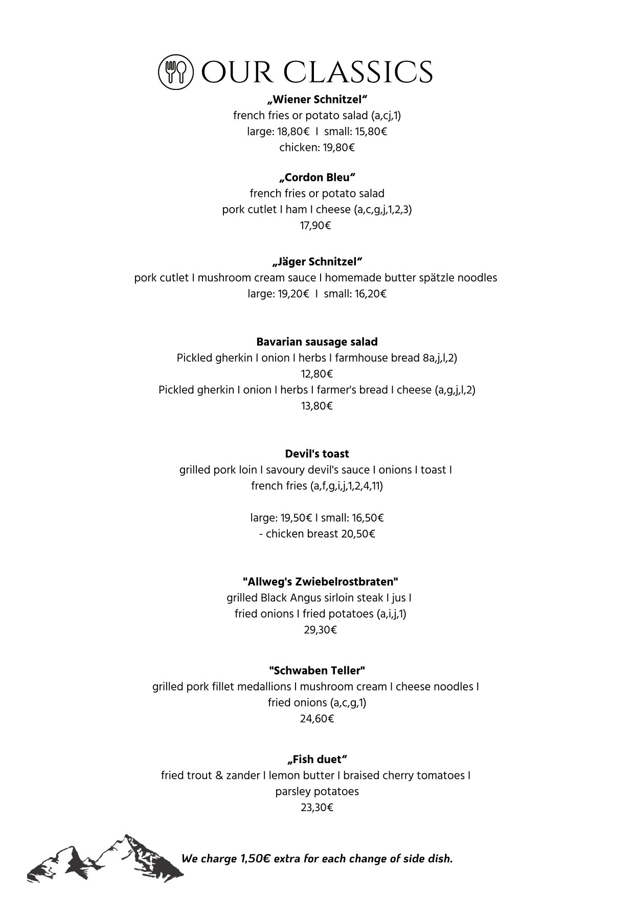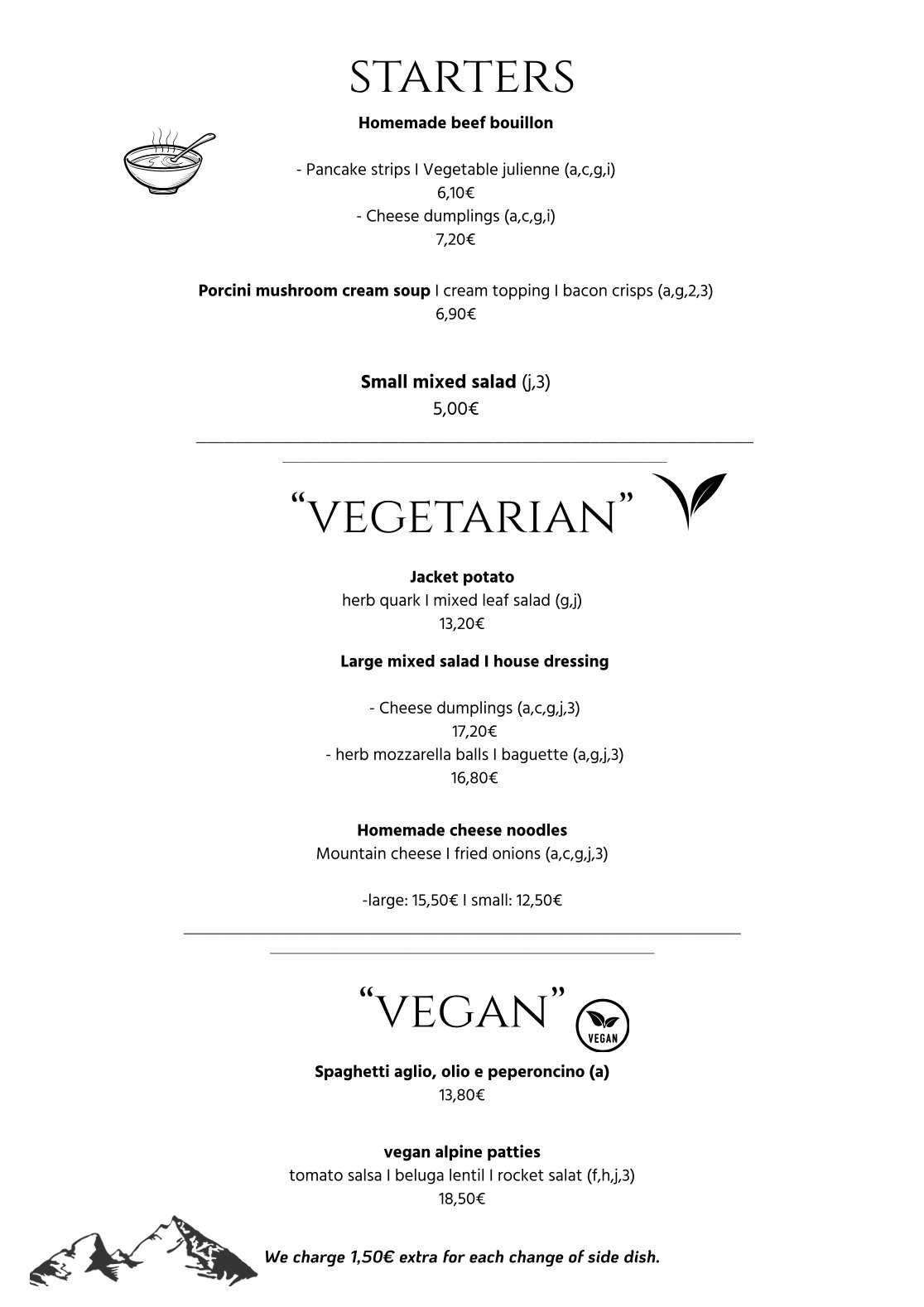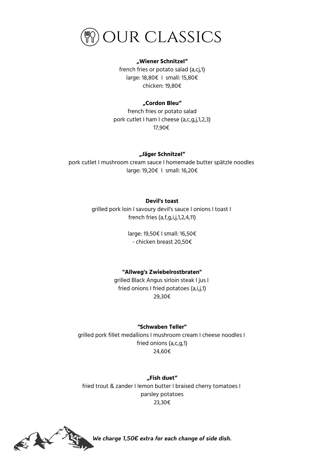 Let our kitchen crew spoil you & enjoy traditional bavarian cuisine with a touch of modernity. Our service team is looking forward to your visit (please note opening hours) Whether starters, vegetarian or something hearty, the Allweglehen is a clear recommendation from the heart.
