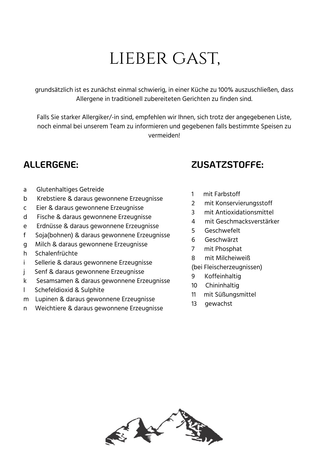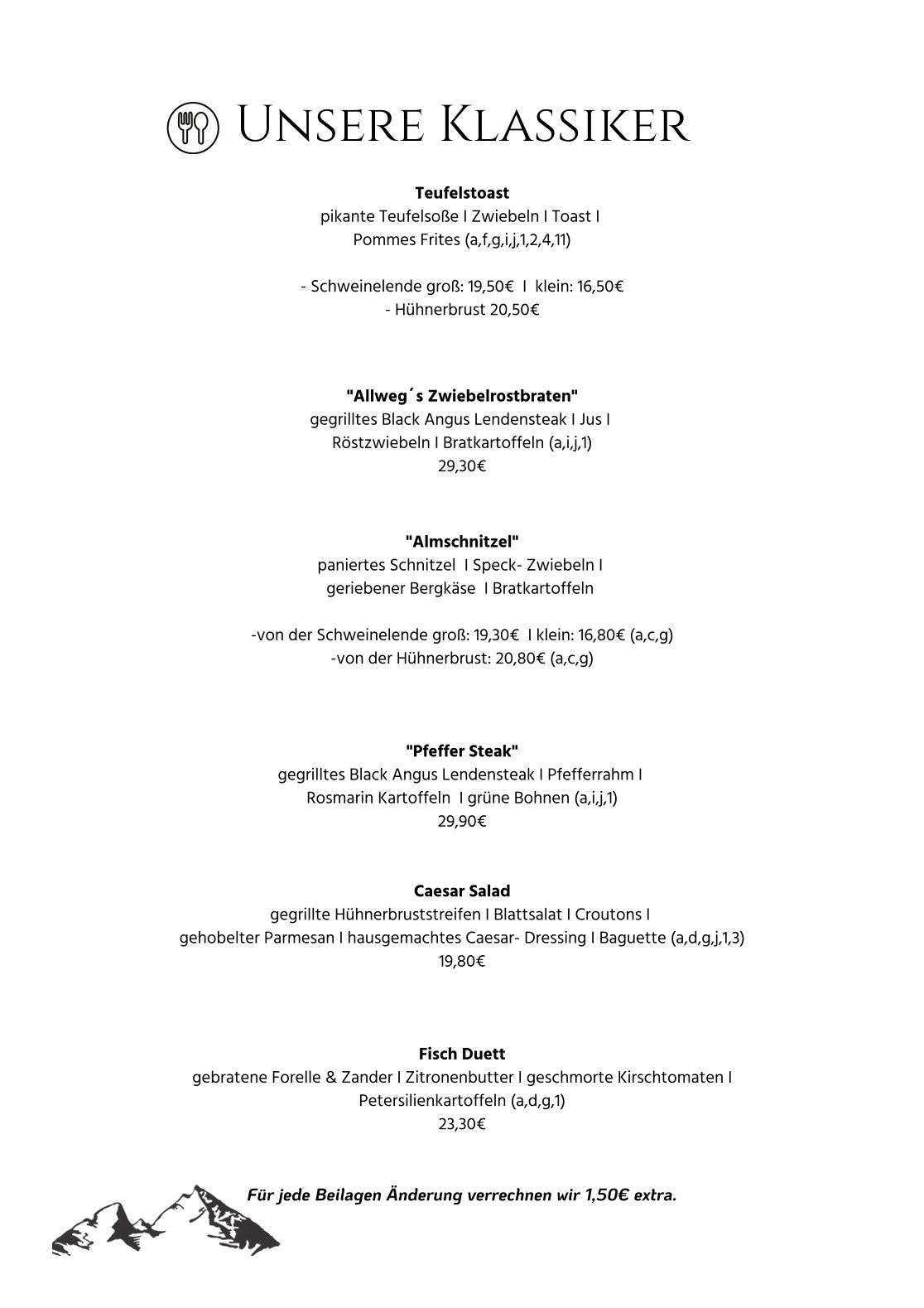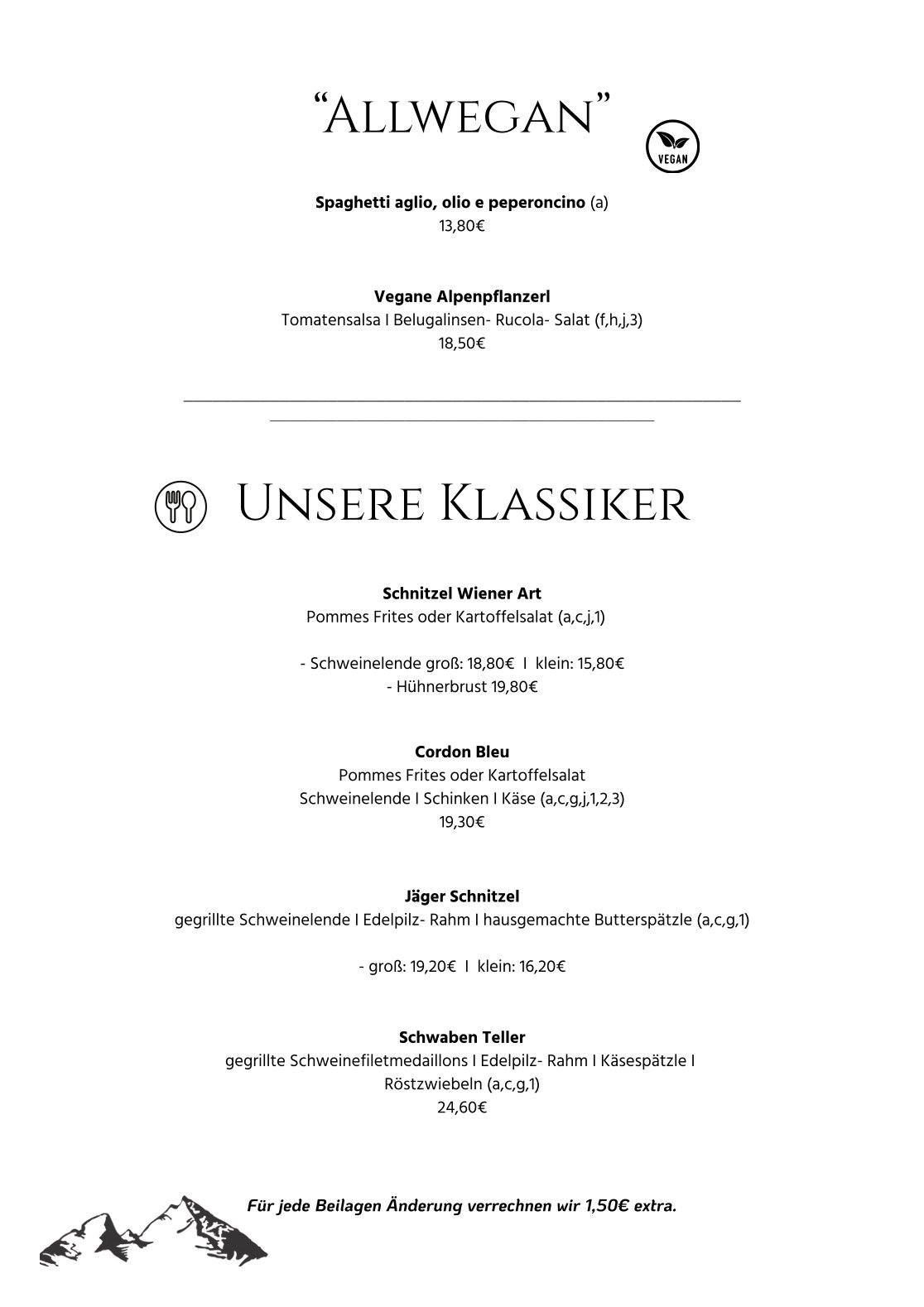 Lassen Sie sich von unserer Küchencrew verwöhnen & genießen Sie eine traditionell bayrische Küche mit einem Hauch von Moderne. Unser Serviceteam freut sich auf Ihr Kommen. (Bitte Öffnungszeiten beachten) Ob Vorspeisen, vegetarisch oder etwas Herzhaftes, das Allweglehen ist eine klare Herzensempfehlung.