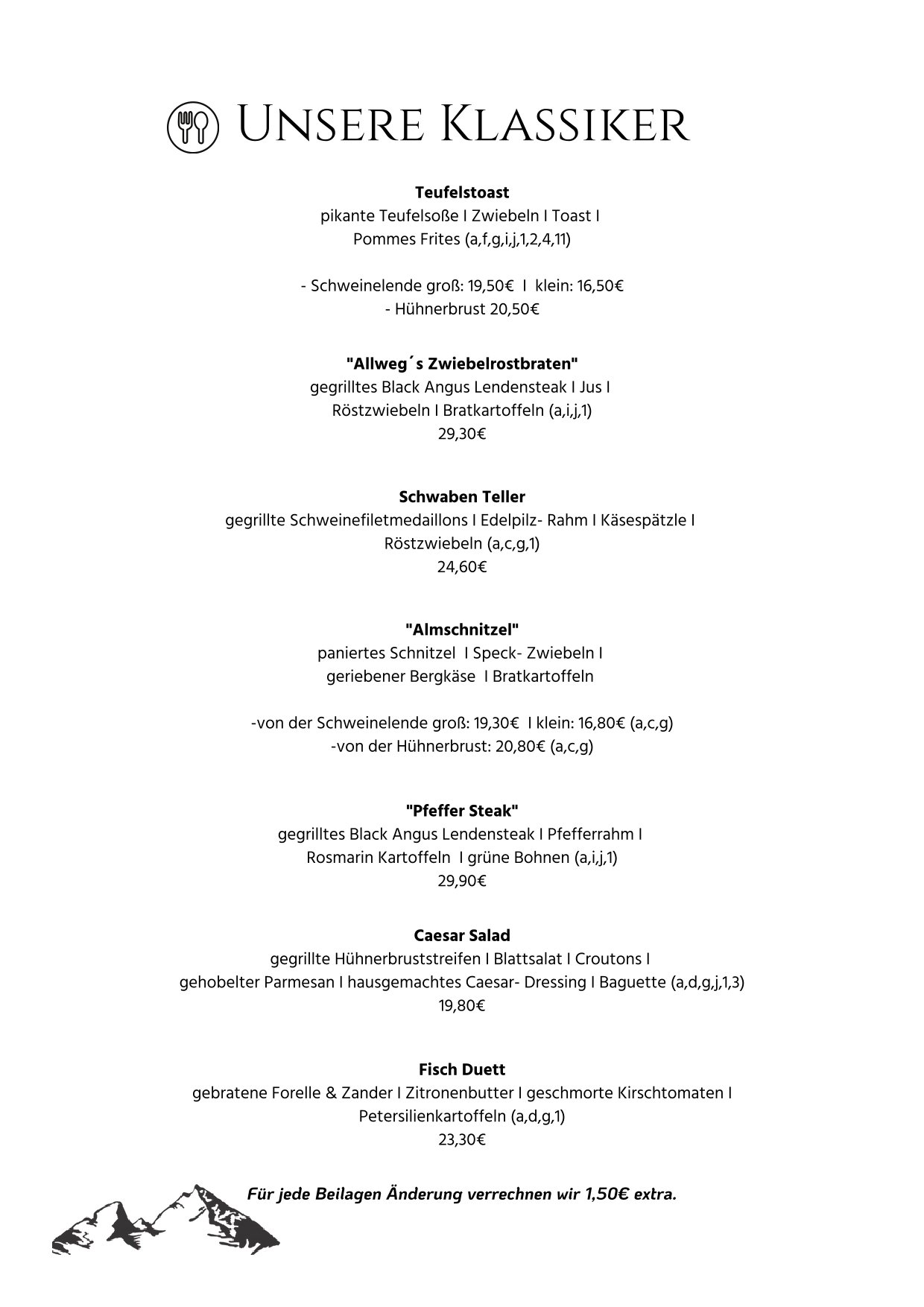 Wir haben ab dem 12.5.2025 eine Sommerkarte. Alle Details finden Sie vor Ort.