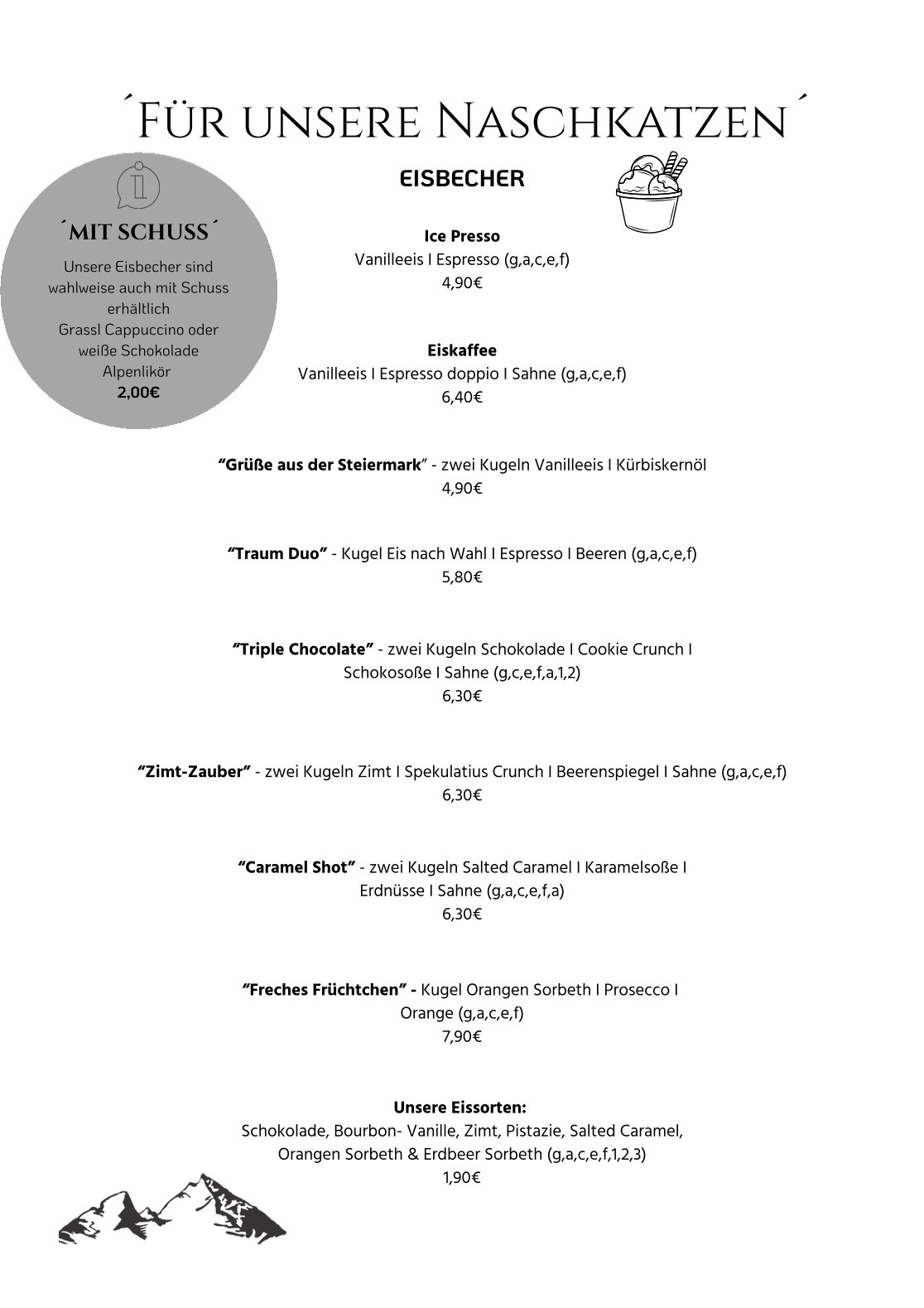 Bei lockerer Atmosphäre & besten Aussichten auf die umliegende Bergkulisse können sich unsere Gäste auf köstliche Speisen mit Lebensmittel aus der Region freuen. Neben erfrischenden Eisbechern, locken Desserts & eine Auswahl an Kuchen von unserem Konditormeister bereits am Nachmittag in das Restaurant.