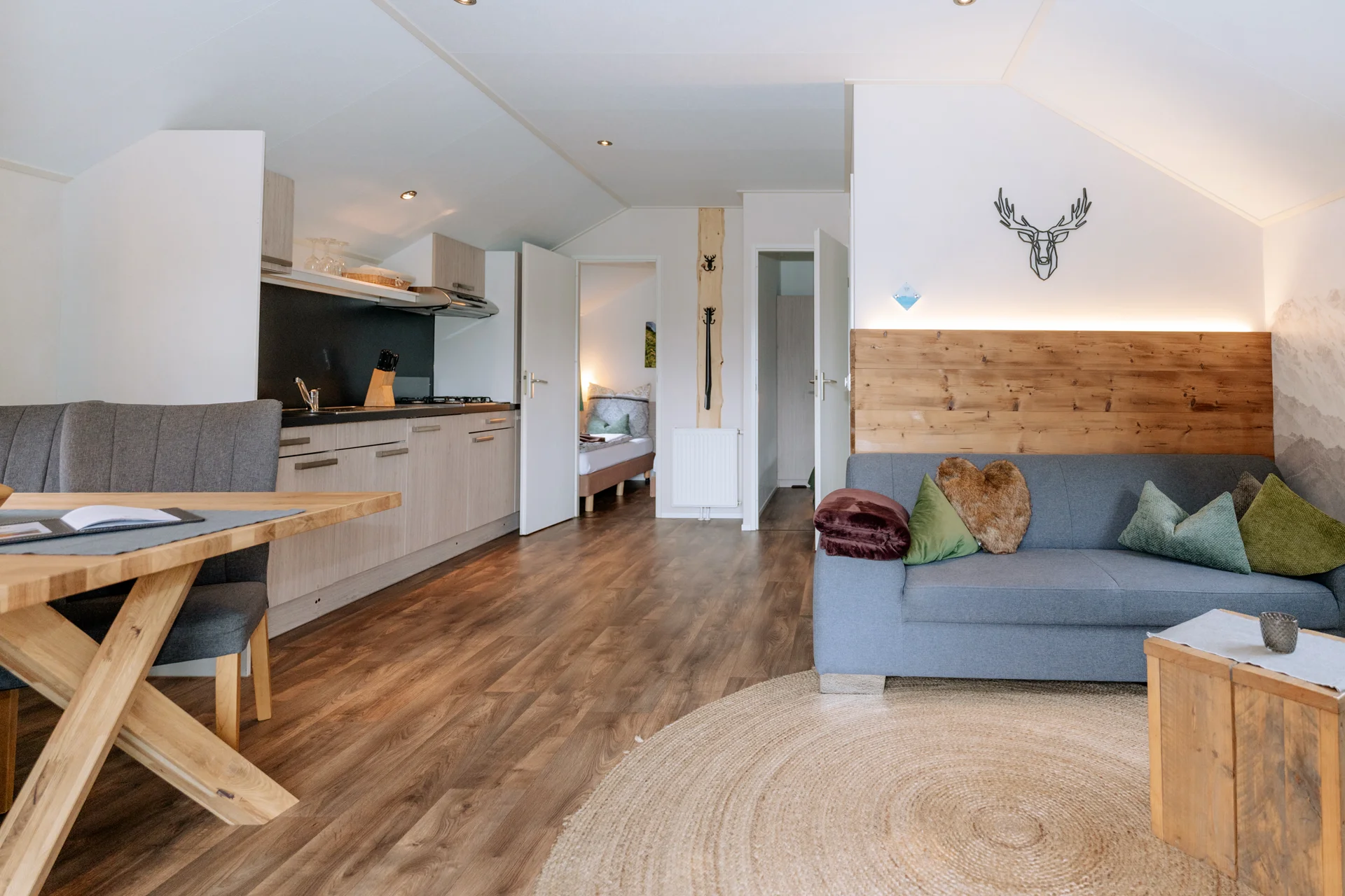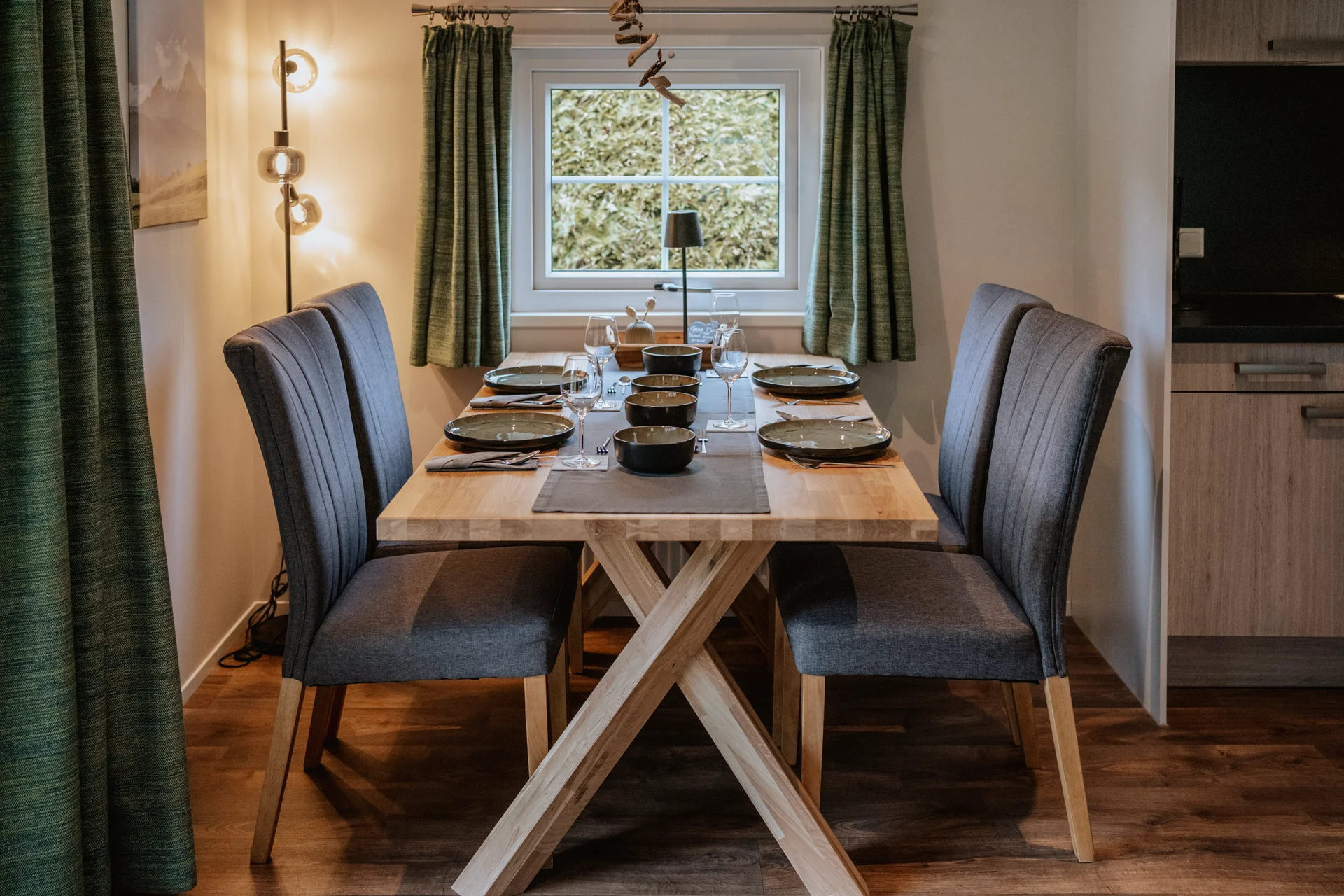 Auf einem separaten Bereich gelegen befinden sich die vier Chalets, welche mit ihren gemütlichen Einrichtungsstilen zum Verweilen einladen. Durch den Standort, am Rande des Resorts bieten die Chalets eine ruhige Atmosphäre. Dabei eröffnet sich ein idealer Blick von den Terrassen auf den Watzmann & den Hochkalter.